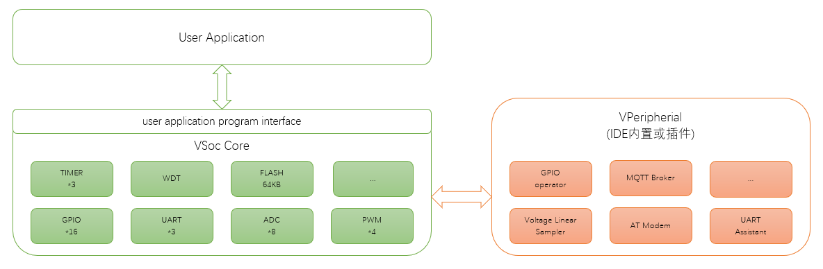 虚拟外设以内置或插件形式集成在IDE中,应用程序可以与虚拟外设交互。