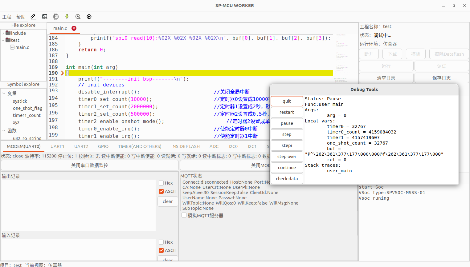 点击"quit"按钮,将退出调试模式,返回到进入调试模式之前的运行或停止状态。