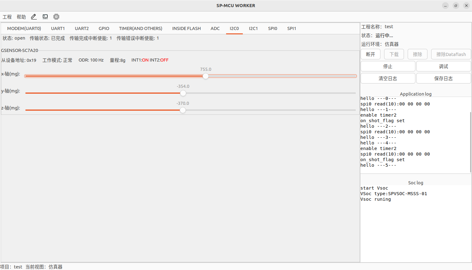 目标板视图点击"虚拟机视图"后,软件切换到内置的VSoc运行环境界面